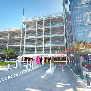 Parkering i parkeringshus med tre forskellige takstklasser: Budget-takst (uden mulighed for annullering), Smart-takst (kan annulleres gratis frem til klokken 24 dagen før den bestilte ankomstdag) og XXL-takst. XXL-taksten giver adgang til en overdækket og ekstra bred parkeringsplads på 3,5 m i stueetagen i nærheden af ind- og udkørslen (kan annulleres gratis frem til klokken 24 dagen før den bestilte ankomstdag). Maks. køretøjsmål: 2,3 m (B) x 5,0 m (L) x 2,0 m (H).